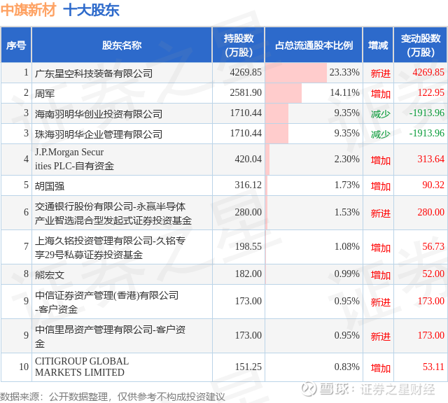 根据中旗新材2025年中报公布的十大股东详情如下: