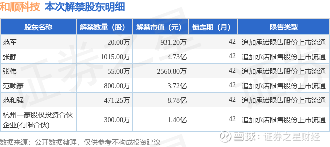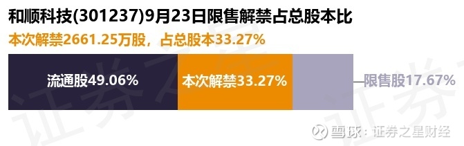 证券之星消息,根据市场公开信息整理,和顺科技(301237)于9月23日将有2661.25万股限售股份解禁,为公司追加承诺限售股份上市流通,占公司总股本33.27%。(本次数据根据历史公告整理得出,实际情况以上市公司最新公告为准)本次解禁后,公司还有1413.75万股限售股份,占总股本17.67%。具体如下图所示: