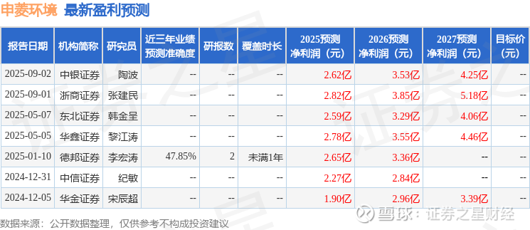 最新盈利预测明细如下: