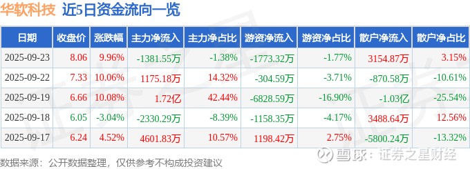 证券之星消息,华软科技9月23日涨停收盘,收盘价8.06元。该股于9点25分涨停,2次打开涨停,截止收盘封单资金为1.71亿元,占其流通市值3.45%。