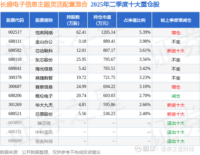 根据2025基金半年报公募基金重仓股数据,重仓该股的公募基金共3家,其中持有数量最多的公募基金为长盛基金的长盛电子信息主题灵活配置混合。长盛电子信息主题灵活配置混合目前规模为2.24亿元,最新净值1.802(9月22日),较上一交易日上涨2.5%,近一年上涨41.67%。该公募基金现任基金经理为朱律。