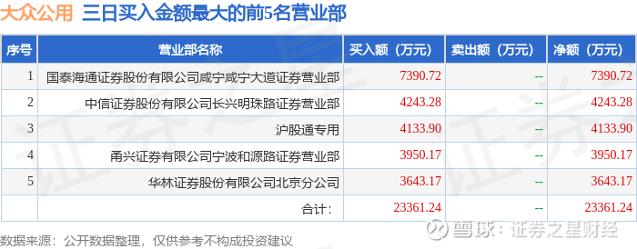 证券之星消息,沪深交易所2025年9月23日公布的交易公开信息显示,大众公用(600635)因非ST、*ST和S证券连续三个交易日内收盘价格涨幅偏离值累计达到20%的证券登上龙虎榜。此次是近5个交易日内第1次上榜。