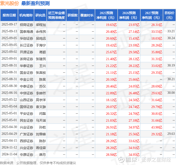 最新盈利预测明细如下: