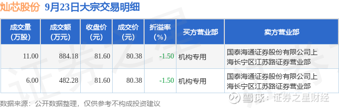 证券之星消息,9月23日灿芯股份发生大宗交易,交易数据如下: