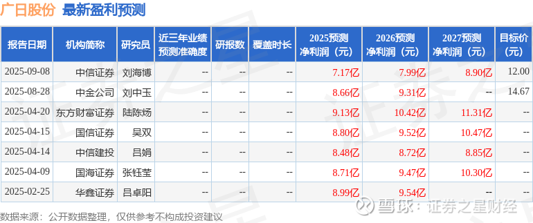 以下是详细的盈利预测信息: