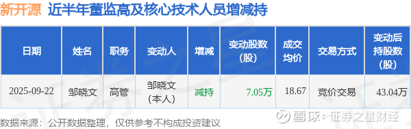 新开源近半年内的董监高及核心技术人员增减持详情如下: