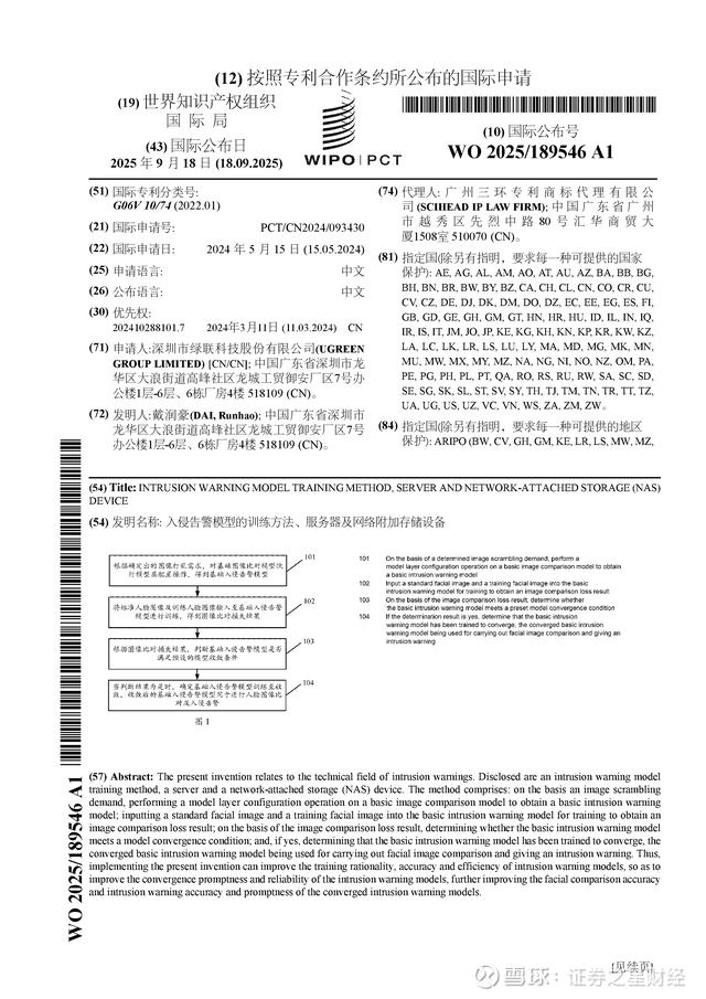 证券之星消息,根据企查查数据显示绿联科技(301606)公布了一项国际专利申请,专利名为“入侵告警模型的训练方法、服务器及网络附加存储设备”,专利申请号为PCT/CN2024/093430,国际公布日为2025年9月18日。