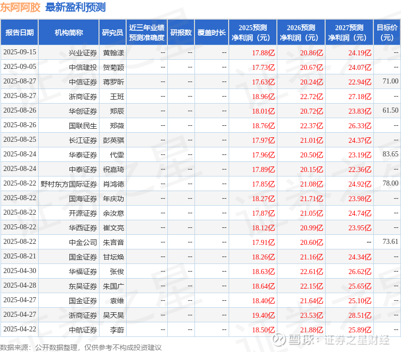 东阿阿胶(000423) 事件 2025H1,公司实现营业收入30.51亿元,同比增长11.02%;归母净利润8.18亿元,同比增长10.74%;2025Q2单季度实现营业收入13.32亿元,同比增长2.91%;归母净利润3.93亿元,同比增长2.01%。公司再次实施中期分红,每10股派发现金红利人民币12.69元(含税),现金红利总额约为8.17亿元,占2025年上半年归母净利润的99.94%。 点评 核心产品增长稳健 分产品看,2025H1,阿胶及系列产品实现收入28.45亿元,同比+11.50%,毛利率为74.83%,同比-0.53pct;其他药品及保健品实现收入1.42亿元,同比+7.06%,毛利率为66.3%,同比-0.1pct;毛驴养殖及贸易实现收入0.34亿元,同比-9.27%。 现金流有所改善,经营逐步向高质量发展 2025H1,公司经营活动现金流净额9.65亿元,较2025Q1有所改善,公司现金储备充裕,期末现金及现金等价物余额为40.04亿元,经营持续高质量发展。 外延拓展步伐持续推进 公司拟以自有资金3379.85万元收购东丰马记药业70%股权,以自有资金5996.57万元收购内蒙古阿拉善苁蓉集团80%股权,并向苁蓉集团增资2800万元。收购完成后,马记药业和苁蓉集团均将成为公司控股子公司,纳入合并报表范围,进一步充实公司在鹿茸、肉苁蓉产业链的布局。 盈利预测与估值 2025H1,公司业绩表现稳健,现金流改善显著,考虑到公司持续加强线上渠道布局,外延拓展步伐持续推进,收入端有望持续稳健增长。同时,2025年,公司围绕“增长、突破”的主题,推进高质量增长,近年来毛利率改善较为显著。因此我们将公司2025-2026年收入预测由67.90/78.12亿元小幅调整至67.81/77.85亿元,2027年收入预测为87.94亿元;公司2025-2026年归母净利润由16.47/19.32亿元上调至17.94/20.66亿元,2027年归母净利润预测为23.28亿元。维持“买入”评级。 风险提示:产品销售不及预期风险,行业竞争加剧风险,政策波动风险,并购事项具有不确定性