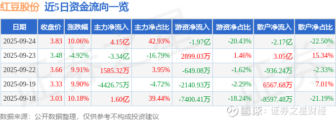 证券之星消息,红豆股份9月24日涨停收盘,收盘价3.83元。该股于9点35分涨停,1次打开涨停,截止收盘封单资金为7701.56万元,占其流通市值0.88%。