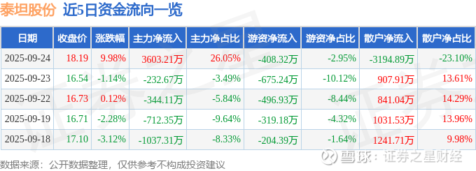 9月24日的资金流向数据方面,主力资金净流入3603.21万元,占总成交额26.05%,游资资金净流出408.32万元,占总成交额2.95%,散户资金净流出3194.89万元,占总成交额23.1%。