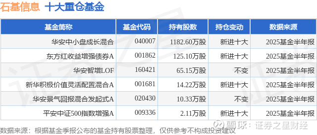 根据2025基金半年报公募基金重仓股数据,重仓该股的公募基金共6家,其中持有数量最多的公募基金为华安基金的华安中小盘成长混合。华安中小盘成长混合目前规模为18.5亿元,最新净值2.9547(9月23日),较上一交易日下跌2.29%,近一年上涨38.91%。该公募基金现任基金经理为金拓。金拓在任的基金产品包括:华安智增精选混合,管理时间为2023年10月23日至今,期间收益率为15.67%;华安景气回报混合发起式A,管理时间为2024年9月19日至今,期间收益率为17.92%;