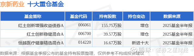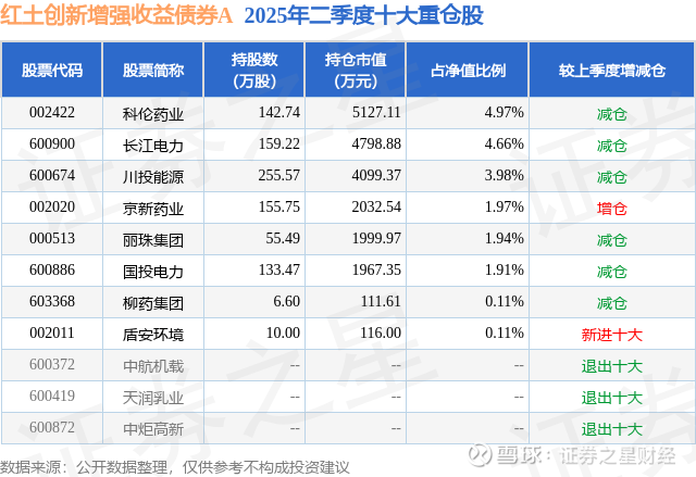 根据2025基金半年报公募基金重仓股数据,重仓该股的公募基金共3家,其中持有数量最多的公募基金为红土创新基金的红土创新增强收益债券A。红土创新增强收益债券A目前规模为9.85亿元,最新净值1.3721(9月23日),较上一交易日下跌0.06%,近一年上涨4.67%。该公募基金现任基金经理为陈若劲 艾雪晗。陈若劲在任的基金产品包括:红土创新稳健混合A,管理时间为2019年3月13日至今,期间收益率为59.52%;红土创新稳进混合A,管理时间为2020年3月6日至今,期间收益率为35.09%;红土创新添利债券A,管理时间为2022年9月21日至今,期间收益率为9.7%。