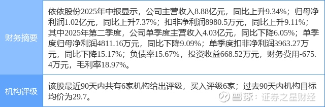 2025年8月24日,天风证券研究员孙海洋发布了对依依股份的研报《全球供应优势逐步显现》,该研报对依依股份给出“买入”评级。证券之星数据中心根据近三年发布的研报数据计算,该研报作者对此股的盈利预测准确度为71.79%。