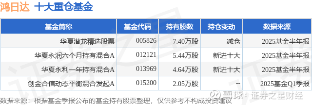 根据2025基金半年报公募基金重仓股数据,重仓该股的公募基金共3家,其中持有数量最多的公募基金为华夏基金的华夏潜龙精选股票。华夏潜龙精选股票目前规模为0.89亿元,最新净值2.3395(9月23日),较上一交易日下跌1.15%,近一年上涨26.77%。该公募基金现任基金经理为徐恒。徐恒在任的基金产品包括:华夏移动互联混合人民币,管理时间为2024年12月26日至今,期间收益率为8.18%;华夏成长先锋一年持有混合A,管理时间为2025年9月11日至今,期间收益率为5.47%。