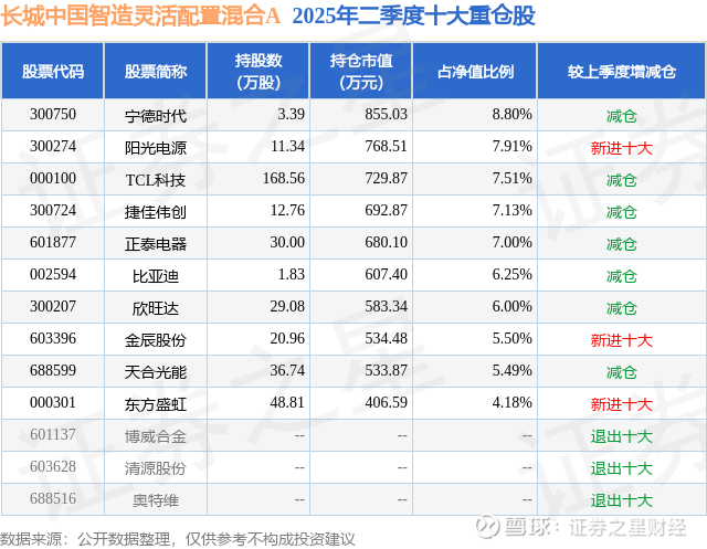 长城中国智造灵活配置混合A的前十大重仓股如下: