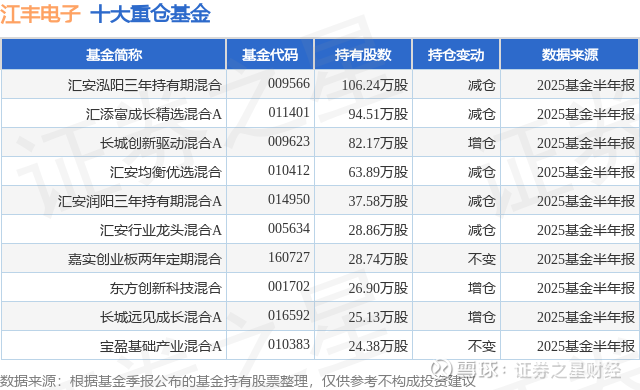 重仓江丰电子的前十大公募基金请见下表: