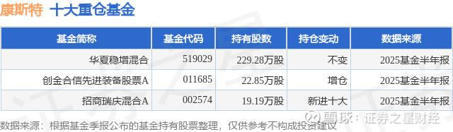 根据2025基金半年报公募基金重仓股数据,重仓该股的公募基金共3家,其中持有数量最多的公募基金为华夏基金的华夏稳增混合。华夏稳增混合目前规模为11.46亿元,最新净值3.197(9月23日),较上一交易日下跌1.14%,近一年上涨89.4%。该公募基金现任基金经理为彭海伟。彭海伟在任的基金产品包括:华夏景气成长一年持有混合发起式A,管理时间为2024年3月28日至今,期间收益率为54.11%。
