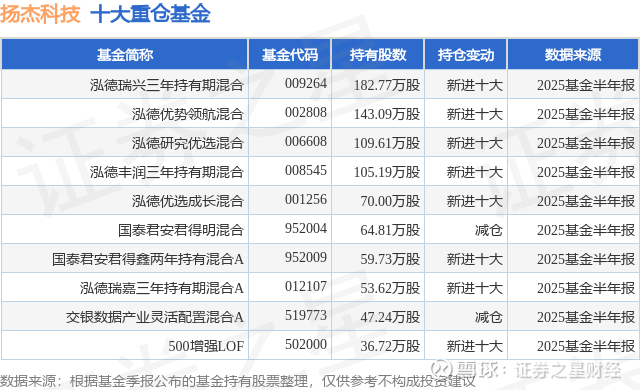 重仓扬杰科技的前十大公募基金请见下表:
