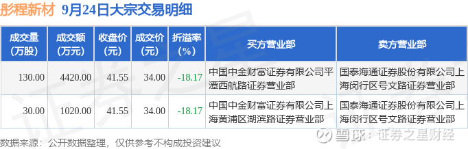证券之星消息,9月24日彤程新材发生大宗交易,交易数据如下: