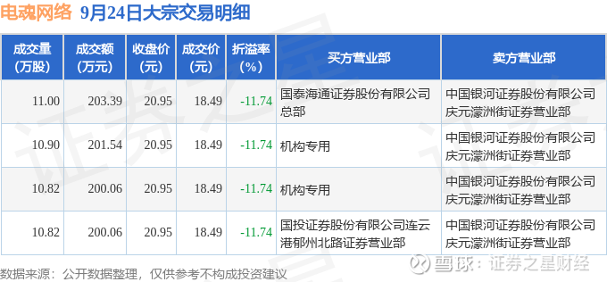 证券之星消息,9月24日电魂网络发生大宗交易,交易数据如下: