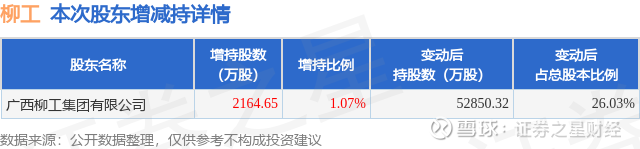 证券之星消息,9月24日柳工发布公告《柳工:关于控股股东持股比例变动触及1%整数倍暨增持股份计划进展的公告》,其股东广西柳工集团有限公司于2025年7月26日至2025年9月23日间合计增持2164.65万股,占公司目前总股本的1.0661%,变动期间该股股价下跌2.96%,截止9月23日收盘报10.82元。