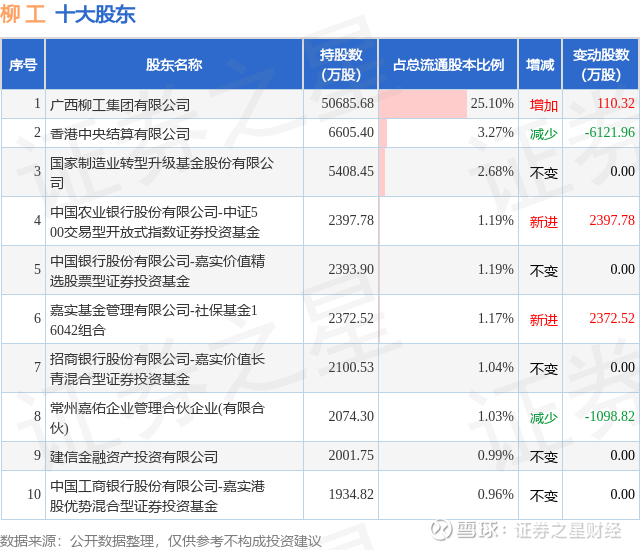 根据柳工2025年中报公布的十大股东详情如下: