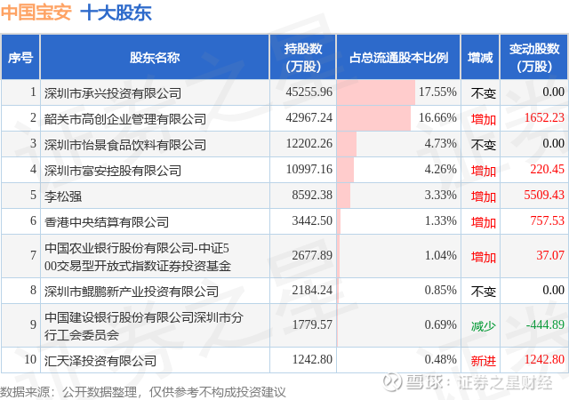 根据中国宝安2025年中报公布的十大股东详情如下: