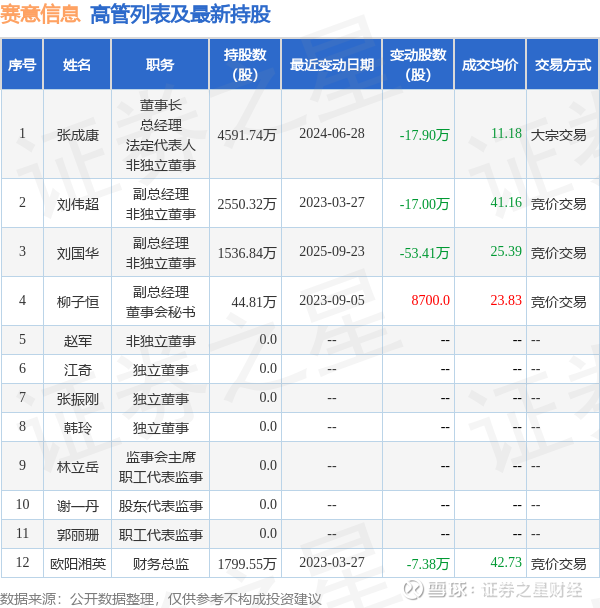 赛意信息近半年内的董监高及核心技术人员增减持详情如下:
