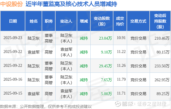 中设股份近半年内的董监高及核心技术人员增减持详情如下: