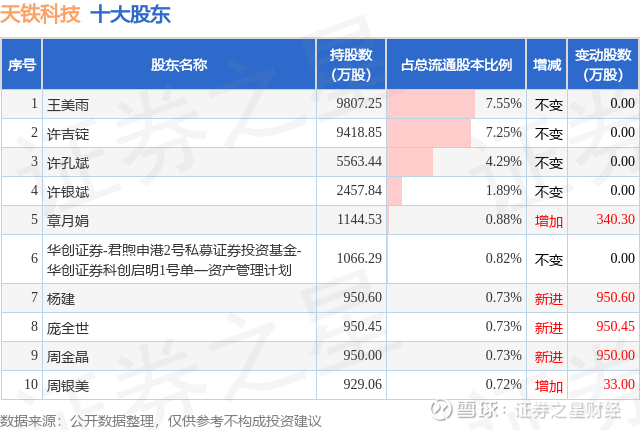 根据天铁科技2025年中报公布的十大股东详情如下: