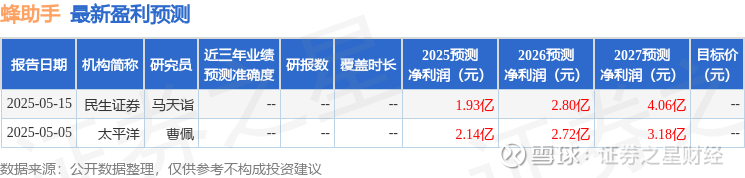 最新盈利预测明细如下:
