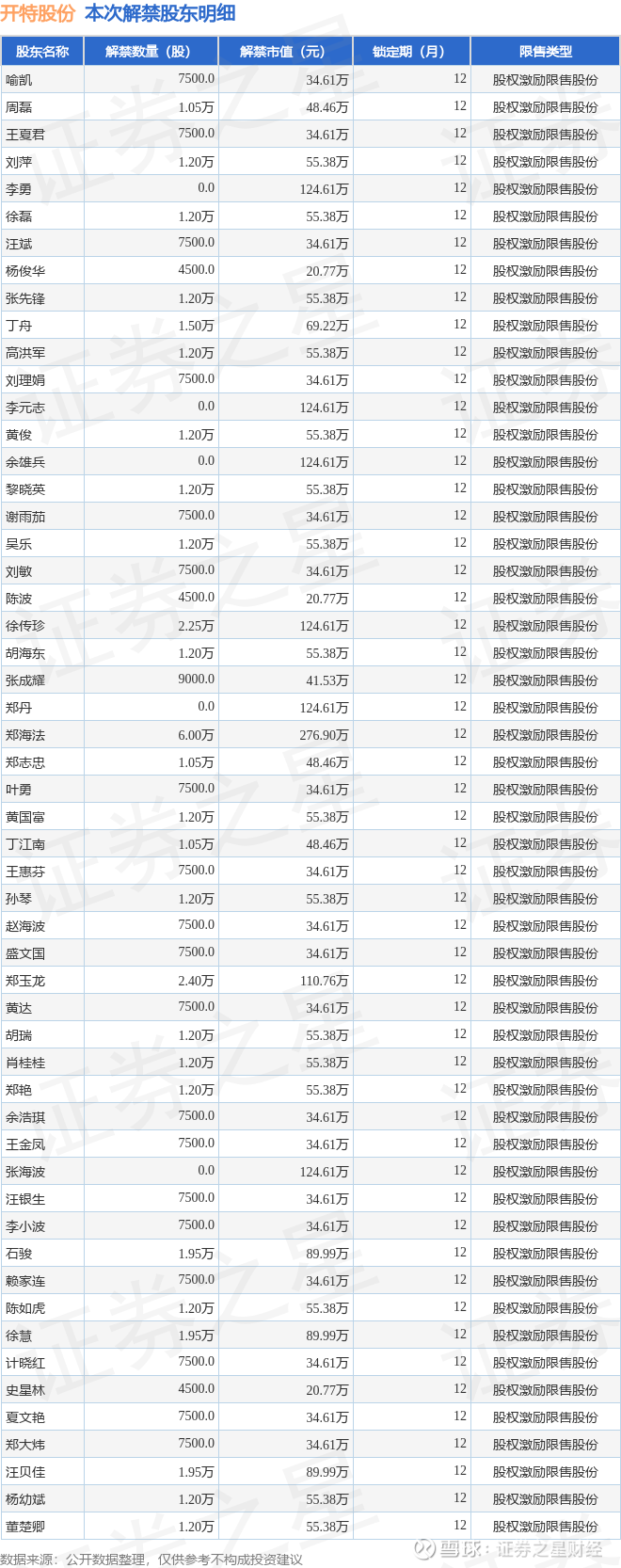 本次解禁涉及股东明细见下表: