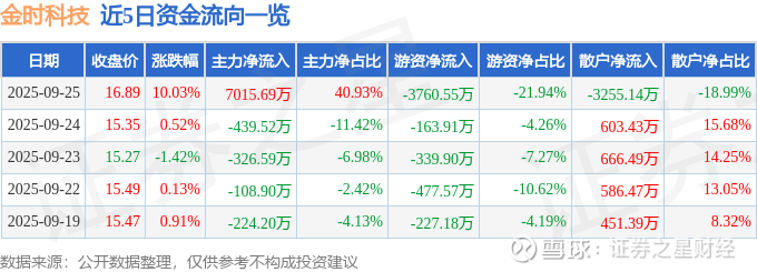 9月25日的资金流向数据方面,主力资金净流入7015.69万元,占总成交额40.93%,游资资金净流出3760.55万元,占总成交额21.94%,散户资金净流出3255.14万元,占总成交额18.99%。
