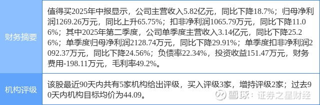 2025年9月12日,中航证券研究员裴伊凡,郭念伟发布了对值得买的研报《“全面AI”战略加速落地,核心业务稳步优化》,该研报对值得买给出“买入”评级。研报中预计2025-2027年公司归母净利润分别为1.29/1.46/1.82亿元,EPS分别为0.65/0.74/0.91元,当前股价对应PE分别为52/46/37倍,维持 “买入”评级。证券之星数据中心根据近三年发布的研报数据计算,该研报作者对此股的盈利预测准确度为48.02%。