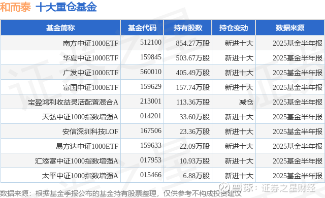 根据2025基金半年报公募基金重仓股数据,重仓该股的公募基金共13家,其中持有数量最多的公募基金为南方基金的南方中证1000ETF。南方中证1000ETF目前规模为649.53亿元,最新净值3.0465(9月24日),较上一交易日上涨1.73%,近一年上涨63.97%。该公募基金现任基金经理为崔蕾。崔蕾在任的基金产品包括:南方中证申万有色金属ETF发起联接A,管理时间为2019年7月12日至今,期间收益率为130.15%;南方中证申万有色金属ETF,管理时间为2019年7月12日至今,期间收益率为136.59%;南方红利低波50ETF,管理时间为2020年1月17日至今,期间收益率为89.25%。