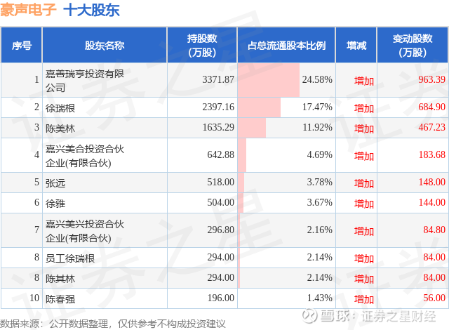 根据豪声电子2025年中报公布的十大股东详情如下: