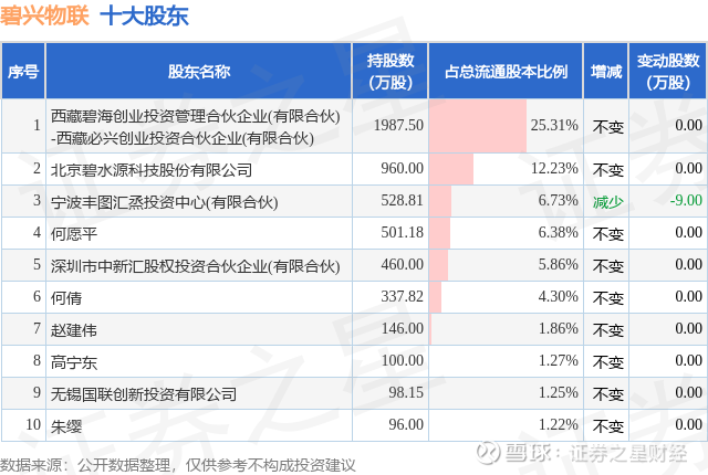 根据碧兴物联2025年中报公布的十大股东详情如下: