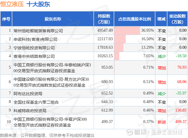 根据恒立液压2025年中报公布的十大股东详情如下:
