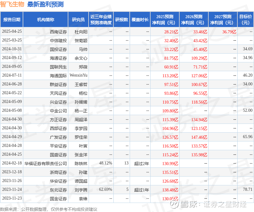 以下是详细的盈利预测信息: