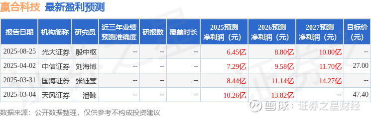 以下是详细的盈利预测信息: