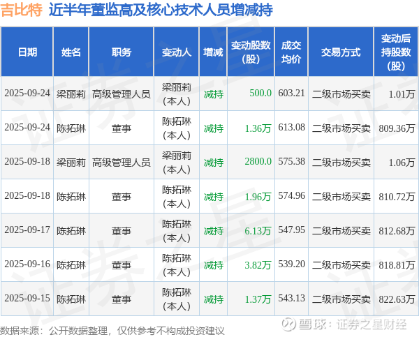 吉比特近半年内的董监高及核心技术人员增减持详情如下: