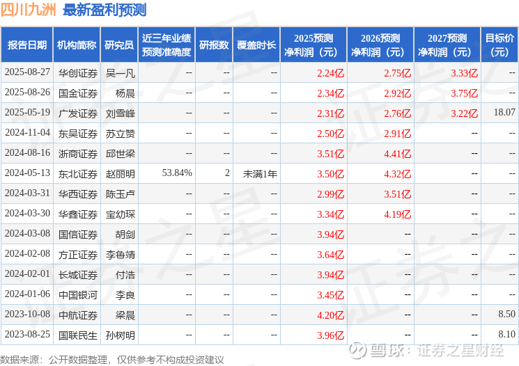 中航证券有限公司梁晨,张超,闫政圆近期对四川九洲进行研究并发布了研究报告《2025年中报点评:军民空管装备领军企业,积极布局低空经济新赛道》,上调四川九洲目标价至20.0元,给予买入评级。