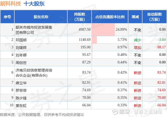 根据朗科科技2025年中报公布的十大股东详情如下: