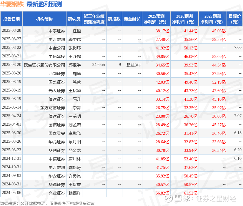 最新盈利预测明细如下: