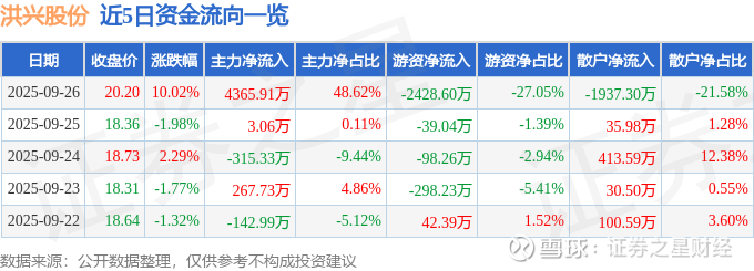 证券之星消息,洪兴股份9月26日涨停收盘,收盘价20.2元。该股于9点51分涨停,未打开涨停,截止收盘封单资金为3900.13万元,占其流通市值2.01%。