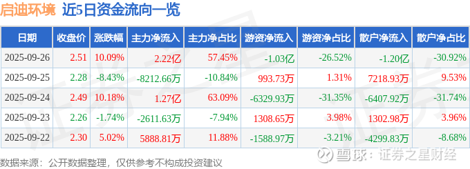 证券之星消息,启迪环境9月26日涨停收盘,收盘价2.51元。该股于9点31分涨停,未打开涨停,截止收盘封单资金为7450.0万元,占其流通市值2.08%。