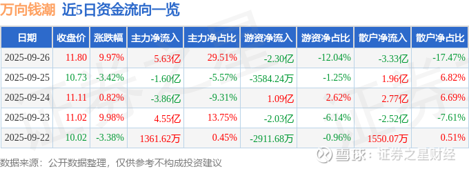 9月26日的资金流向数据方面,主力资金净流入5.63亿元,占总成交额29.51%,游资资金净流出2.3亿元,占总成交额12.04%,散户资金净流出3.33亿元,占总成交额17.47%。