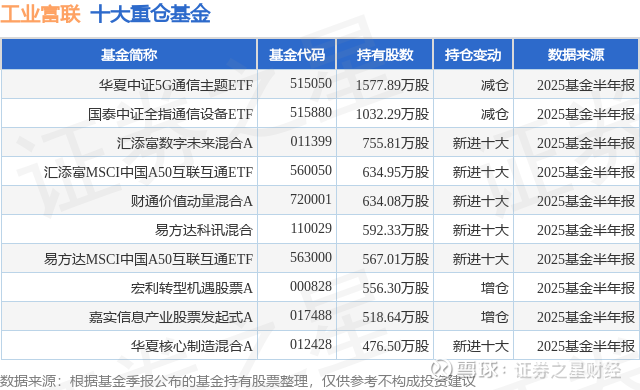 重仓工业富联的前十大公募基金请见下表:
