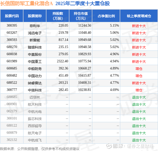 根据2025基金半年报公募基金重仓股数据,重仓该股的公募基金共9家,其中持有数量最多的公募基金为长信基金的长信国防军工量化混合A。长信国防军工量化混合A目前规模为7.57亿元,最新净值1.6384(9月25日),较上一交易日下跌0.58%,近一年上涨64.9%。该公募基金现任基金经理为宋海岸。宋海岸在任的基金产品包括:长信中证500指数增强A,管理时间为2018年2月12日至今,期间收益率为110.21%;长信沪深300指数增强A,管理时间为2019年5月16日至今,期间收益率为79.11%;长信先进装备三个月持有混合A,管理时间为2021年11月29日至今,期间收益率为-7.5%。