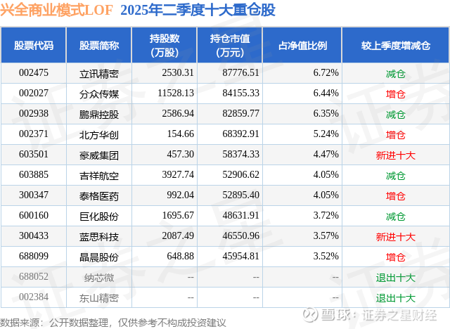 兴全商业模式LOF的前十大重仓股如下: